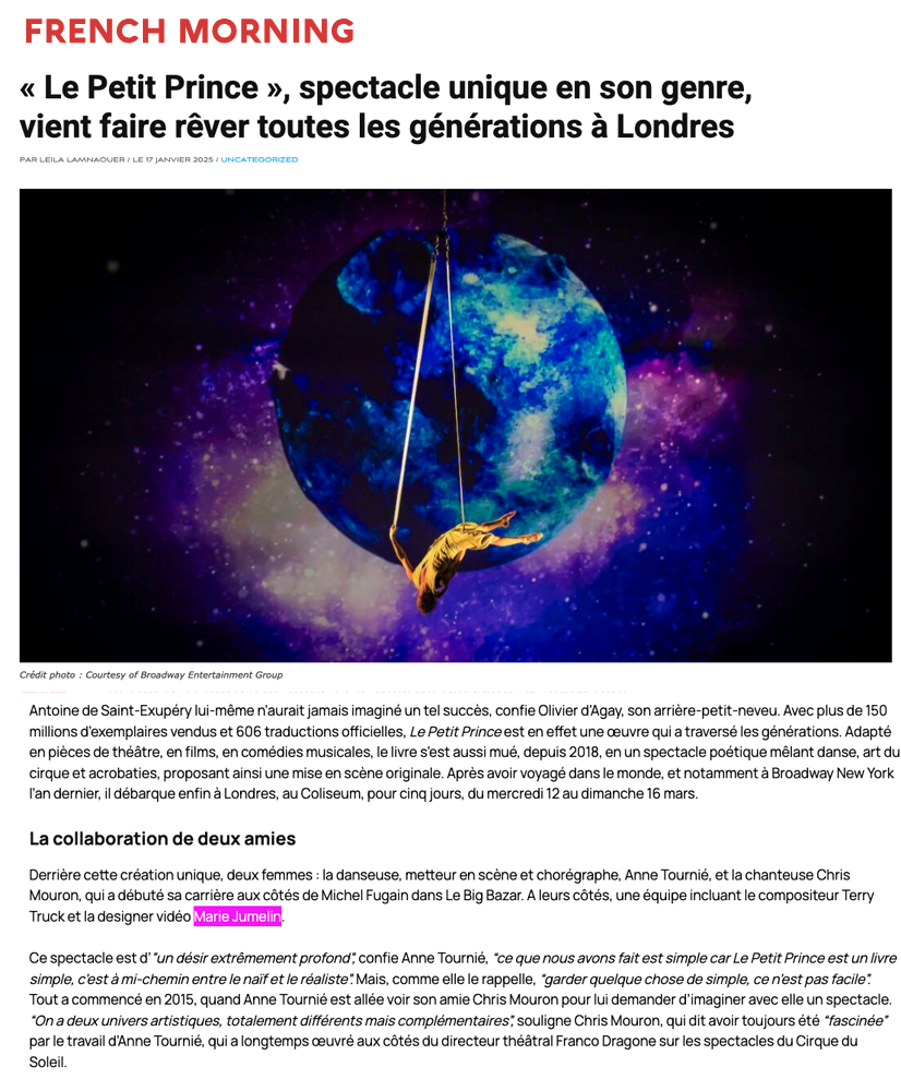 FRENCH MORNING https://london.frenchmorning.com/le-petit-prince-spectacle-unique-en-son-genre-vient-faire-rever-toutes-les-generations-a-londres/
