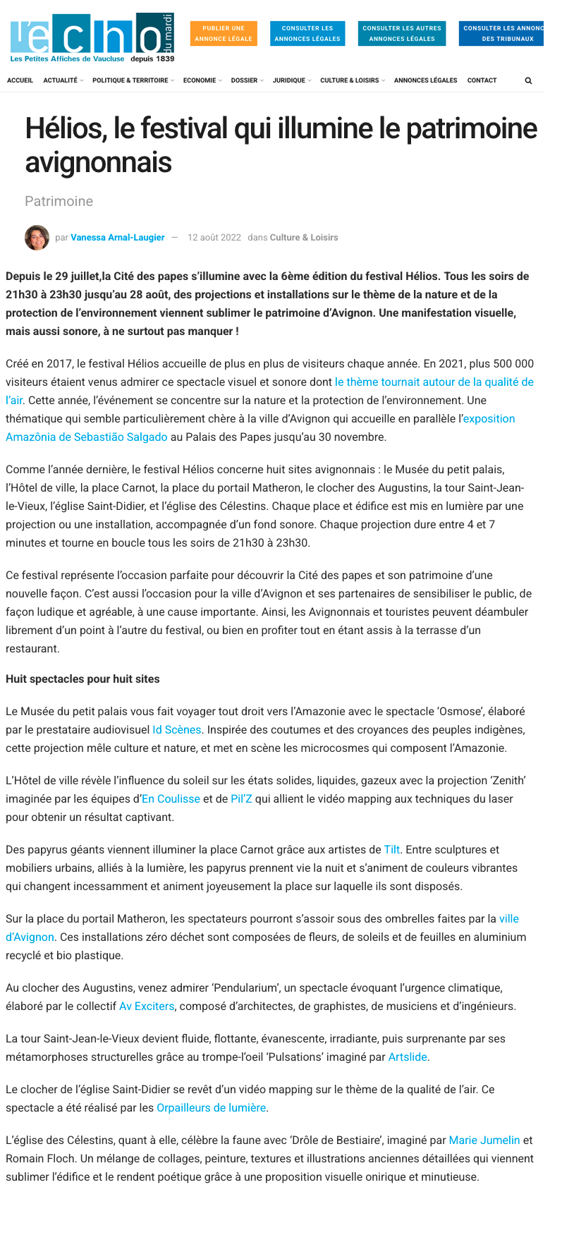 HÉLIOS - MAPPING ARCHITECTURAL