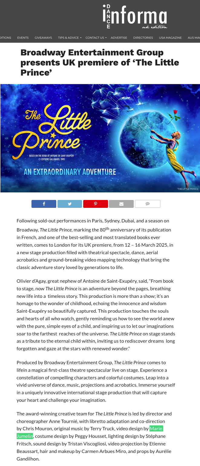 Dance Magazine https://dancemagazine.co.uk/2024/12/broadway-entertainment-group-presents-uk-premiere-of-the-little-prince/
